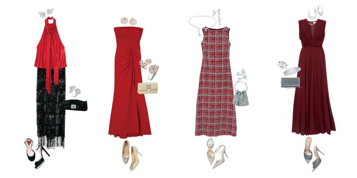 パーティシーンでこそ、赤の存在感と優雅さを味方に。特別なドレスをまとって、誰もが振り返るオーラを放って。
