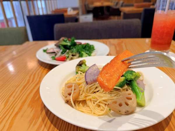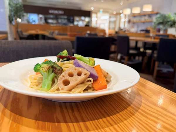 シナグロの魅力は、なんといっても野菜そのもののおいしさ。この日私は「季節野菜のペペロンチーノ」をいただきました。