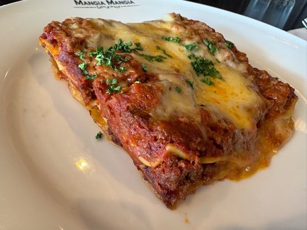 ランチメニューがずらり。たくさんのお客様が並んでいる。一緒に並んだよ。ここは「マンジャ マンジャ」さん。