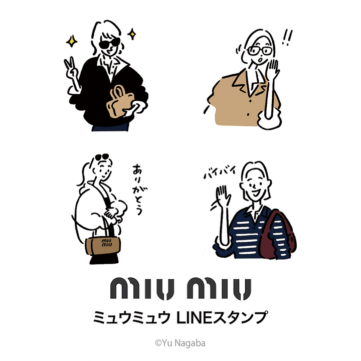 ミュウミュウMIU MIU)から、2025年12月16日(火)から2026年1月12日(月・祝)までの期間、LINE公式アカウントにて長場雄とのコラボレーションによるオリジナルLINEスタンプが登場。