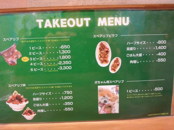 テイクアウトのお客さんも次々とやってきます。マスターに聞くと晩御飯のおかずにもってこい、という近所の方も多いそうです。そして、なんとワンちゃん用の素焼きのスペアリブもテイクアウトOKです。