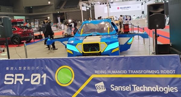 変形ロボ“SR-01”は、2足歩行で移動可能な人型(ロボットモード)と、車輪走行で移動可能な車型(ビークルモード)に変形できる、全高約4メートルのロボットです。アメリカの漫画『トランスフォーマー』を彷彿させます。写真はビークルモードで、ロボットモードへの変形パフォーマンスや車型状態での写真撮影タイムが実施されます。