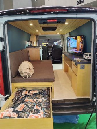 EVのキャンピングカーもありました。Carstayの“Moonn”は、2名用です。