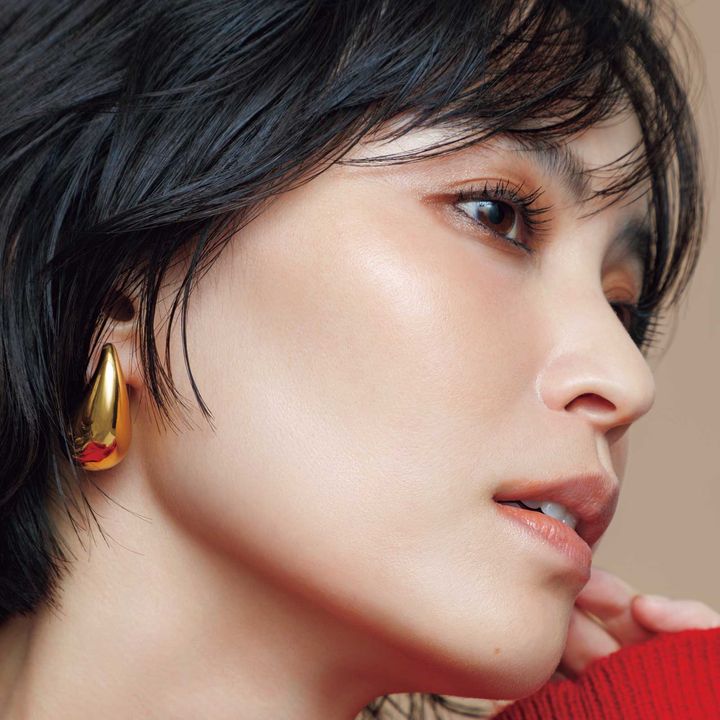ニット¥83,600(ラスパイユ/ザ エディット ストア)ピアス¥3,900〈soie〉リング¥2,310〈シースキー〉(ともにロードス)