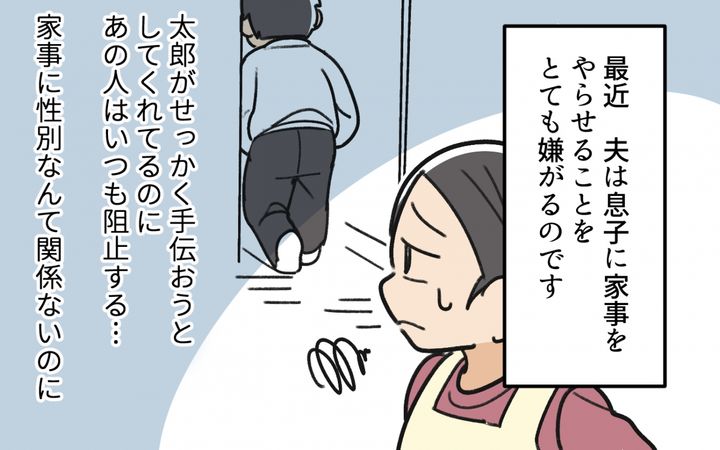 「皿洗いは男の仕事じゃない!」息子のお手伝いを夫が阻止!? 時代錯誤過ぎる夫は変われるの?