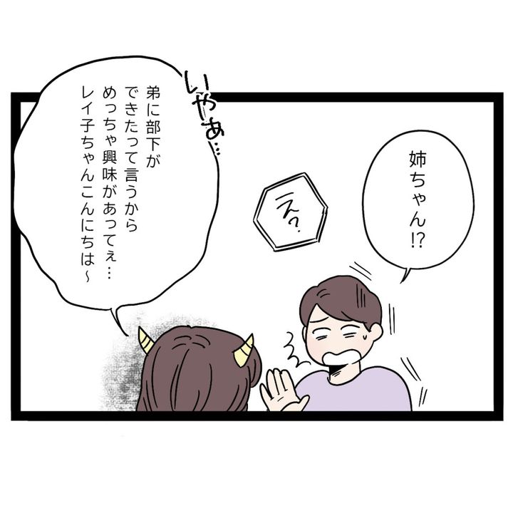 「え?姉ちゃん!?」私の予想外の行動に驚くまさひでをよそに、「いやぁ・・弟に部下ができたって言うから、めっちゃ興味があってぇ・・レイ子ちゃんこんにちは~」穏やかに話している私の形相はきっと鬼のようだったことでしょう・・。