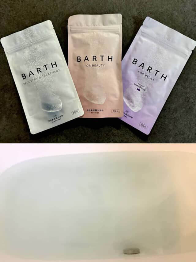 ▲(上画像左から)薬用BARTH中性重炭酸入浴剤、BARTH中性重炭酸入浴剤BEAUTY、薬用BARTH中性重炭酸入浴剤RELAX LavenderFog、(下画像)お湯にバスタブレットを入れると、細かい泡がしゅわしゅわ~と発生し、少しずつ溶けていきます