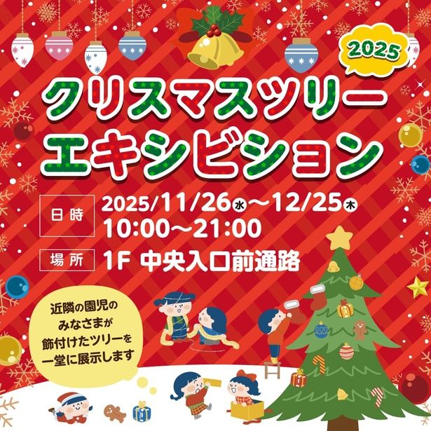 近隣の幼稚園や保育園の園児たちが飾り付けた鮮やかなクリスマスツリーが、1階中央入口前の通路に展示される。ツリーには園児たちが描いた絵やかわいらしい手作りのオーナメントが飾り付けられる。子どもたちが一生懸命仕上げた個性あふれるオリジナルツリーを楽しめる。