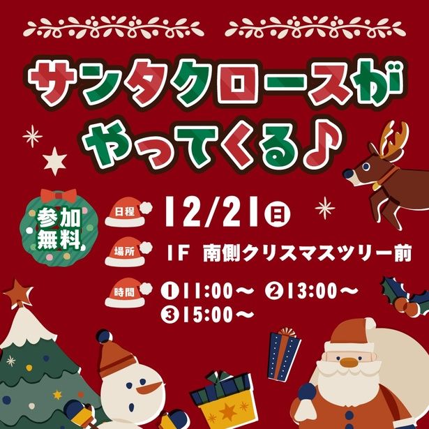 【サンタクロースがやってくる!】イオンモール大和郡山 / 奈良県大和郡山市下三橋町741 / 2025年12月21日(日) / (1)11:00~、 (2)13:00~、 (3)15:00~ / 入場無料