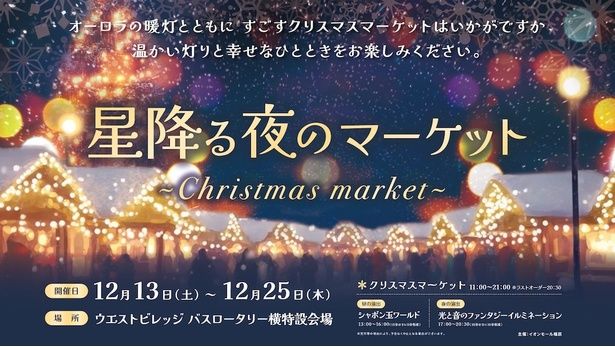【星降る夜のマーケット ~Christmas market~】イオンモール橿原 / 奈良県橿原市曲川町7-20-1 / 2025年12月13日(土)~25日(木) / 11:00~21:00(LO20:30) / 入場無料