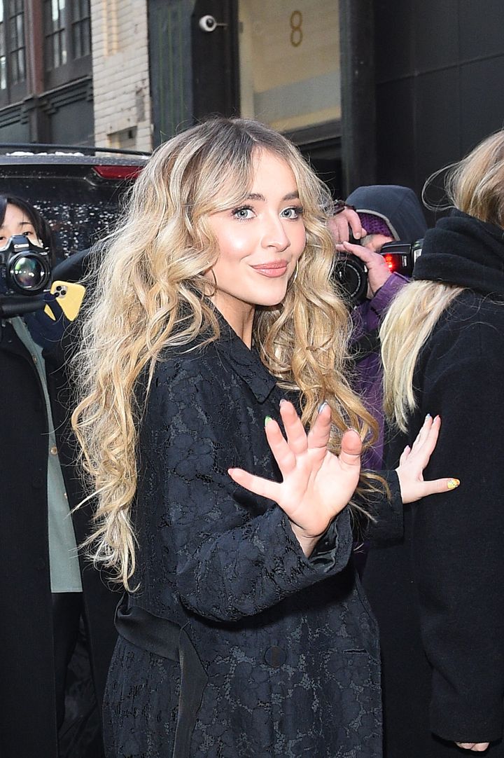 前髪ありのバタフライカットで、さまざまなアレンジをエンジョイしているサブリナ・カーペンター。このときは、バックの寝癖風のラフなカールが、ウィング状の前髪を引き立てているのがわかる。