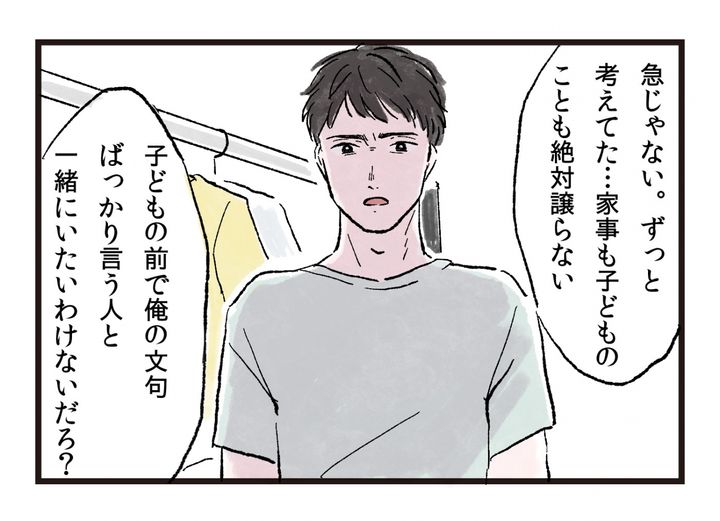 ・我が家そのものでした。 いつもこうやって文句言ってます。…向こうもそう思ってるのはヒシヒシと伝わってくるのに、子どもの事を考えて踏み切れないんだろうな。