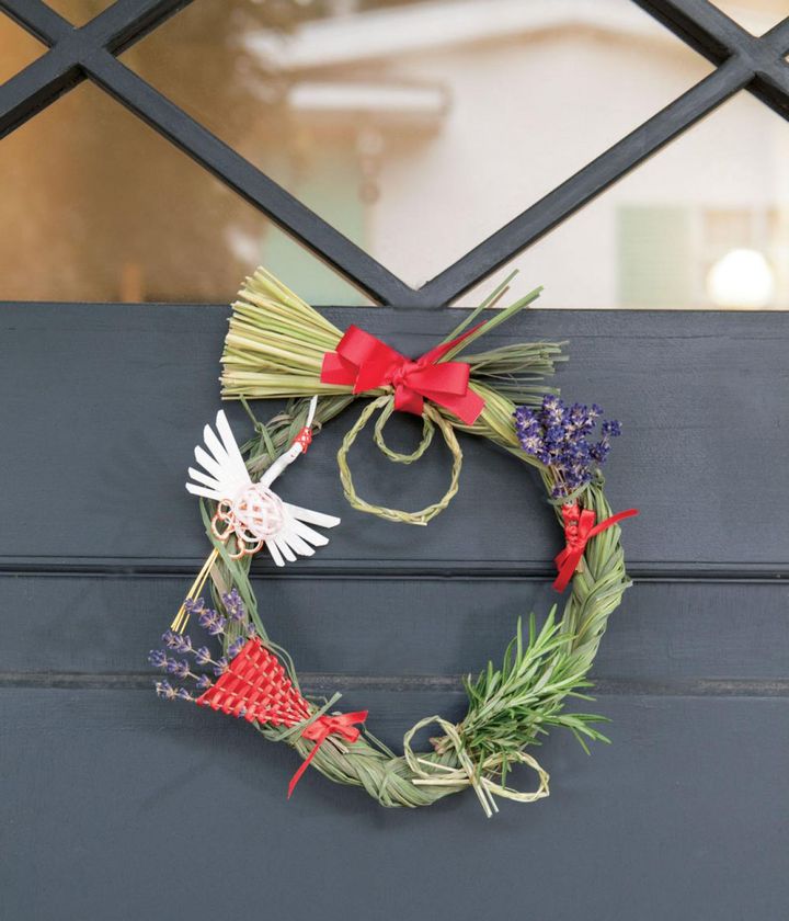 いつもの正月飾りをレモングラスのしめ縄リースに替え、新年をエスニックなしつらえで迎えてみるのもおしゃれです。アジアのハーブのためか、レモングラスが和風の飾りになじむのもうれしい発見。