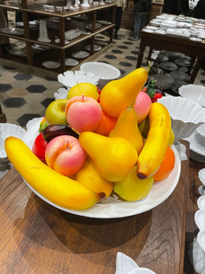 美味しそうなフルーツバスケットと思い近づくと、なんと桃やバナナ、梨、レモンなどを模した色とりどりのキャンドル。細部に至るまで綿密に作られたそれらは本物級のクオリティだ。火を灯さずに飾るだけでもお部屋のチャームポイントになる上に、実際に食卓でキャンドルとして使っても可愛いこと間違いなし。お家にゲストが来たときには、きっと話題になるはず。数を多めにゲットして、写真のように重ねて空間のアクセントにしたい。