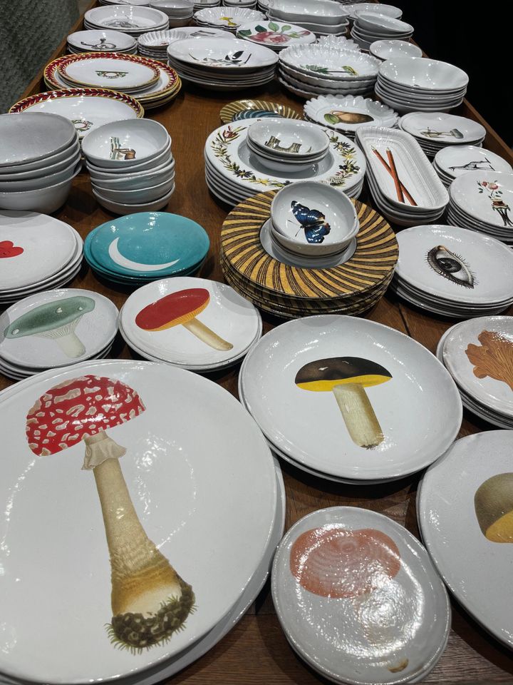 毒キノコや蝶々、目など『不思議の国のアリス』を彷彿とさせるキュートな奇妙さが魅力の器たち。ビジュアルはユニークでありつつ、形は至ってシンプルなので普段から使いやすいのもポイントのひとつ。サイズや深さのバリエーションも豊かなので、それぞれの今欲しい一皿が見つかるはず。私は全体に赤いドット柄のきのこが描かれた大皿で、きのこパスタを食べたい!