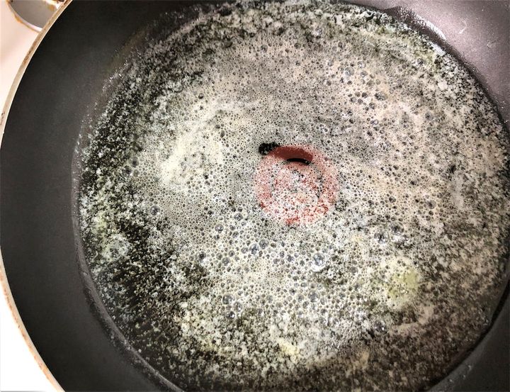 プチプチを通り越すとバターオイルは透明になってきます。これが焦げるサイン!温度が上がり過ぎです。火を弱めるなどして、温度を下げてください。