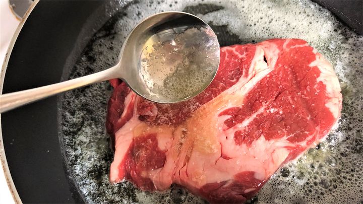 バターの細かい泡がプチプチ出た状態をキープしながら焼くと、ふっくらした香り豊かなステーキになるのだとか。