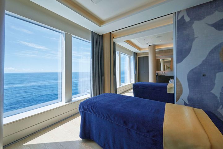 「眠りの深さに着目したトリートメントがユニーク。『渚』はウトウトした仮眠状態で、細胞を回復。『深海』はより深い瞑想状態で、睡眠不足や脳疲労の解消。スパと合わせて、船首の洋上風呂や展望大浴場の利用を。湯につかりながら大海原をぼーっと眺めているだけで極上の開放感」