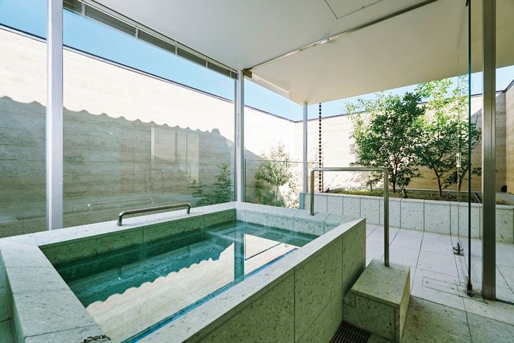 「京都小川生薬の店舗に併設された100㎡超えの1室のみの隠れ家ヴィラ。目玉は趣向の異なる2つのお風呂だ。自然光がたっぷりと降り注ぐテラス前のお風呂は圧倒的な開放感で、心地よさは格別。朝食には湯豆腐や野菜たっぷりの御膳が供され、体が健やかになる滞在が約束されている」