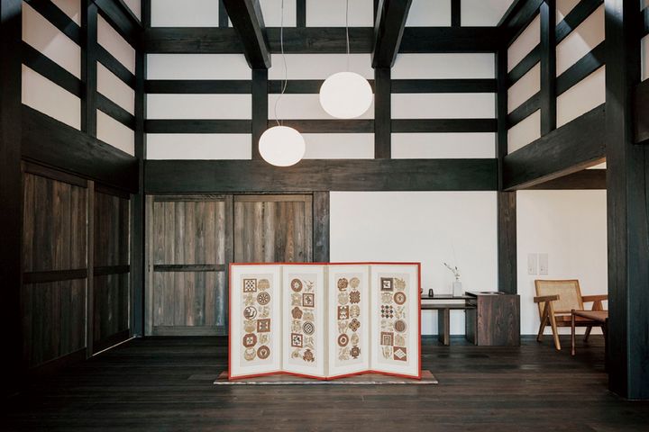 「民藝に浸れる富山の宿。築200年の古民家、アズマダチを改修した3室のみの客室は、それぞれ紙、絹、土が天井や壁に用いられ包まれるような心地よさ。芹沢銈介などの民藝のほか、ひっそりとある内藤礼のアートや里山の夕焼けを眺めていると心が落ち着きます」
