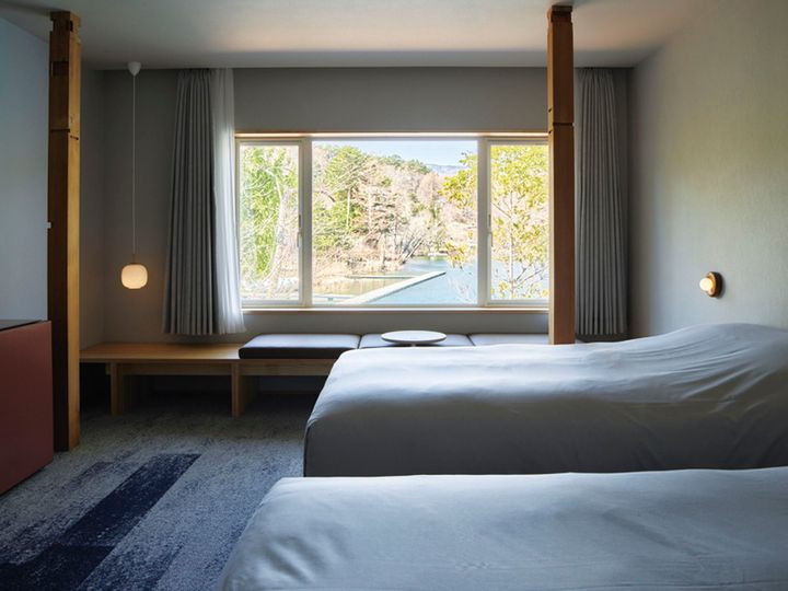 「ザ・コンランショップが初めてデザイン監修したホテル。山々に囲まれた複合施設VISON内のはずれにぽつんとたたずみます。6室の客室はそれぞれ異なるコンセプトで、キッチンもあり自宅のように楽しめる。遠くに稜線を望み、最高のデザイン×絶景という贅沢さが大きな魅力」