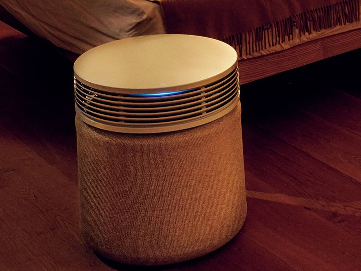 インテリアに溶け込む空気清浄機。カバーチェンジで部屋に調和も。サイドテーブルとしても使えるデザインで、家具と自然に調和するのは北欧スタイルの真骨頂。本体カラーはライトグレー。別売りのプレフィルター(¥2,860)は6色から選べてカスタマイズ可。
