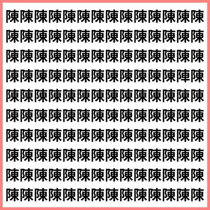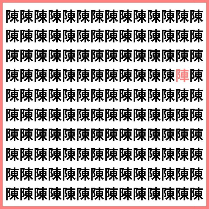陳の中に1つだけ…【1文字だけ違う】漢字間違い探しで脳トレ、何秒で見つかる?