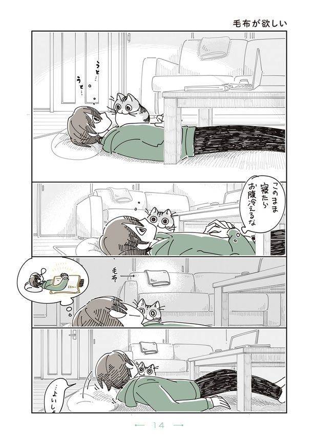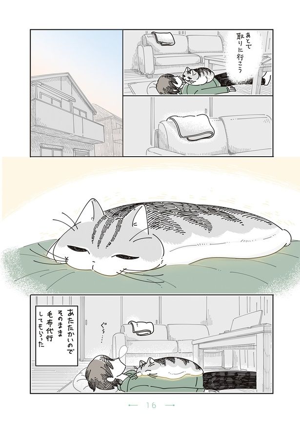 3. うたたねしていた飼い主の上には超ご機嫌な猫。毛布を取りに行きたかったけれど…/夜は猫といっしょ8②