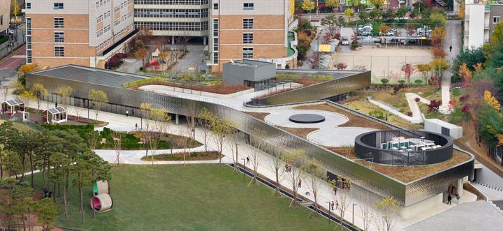 2015年に構想が始まり、約10年を経て開館に至った本施設。建築を手がけたのは、鬱陵島「コスモスリゾート」や聖水の「HAUS NOWHERE SEOUL」を設計した建築家キム・チャンジュン氏。光を柔らかく拡散する金属と透明性のあるデザインが特徴で、「公園の中の未来型美術館」をコンセプトに、自然環境と美しく調和します。公園とつながる設計により、散歩するように立ち寄れる空間がなんとも魅力的です。