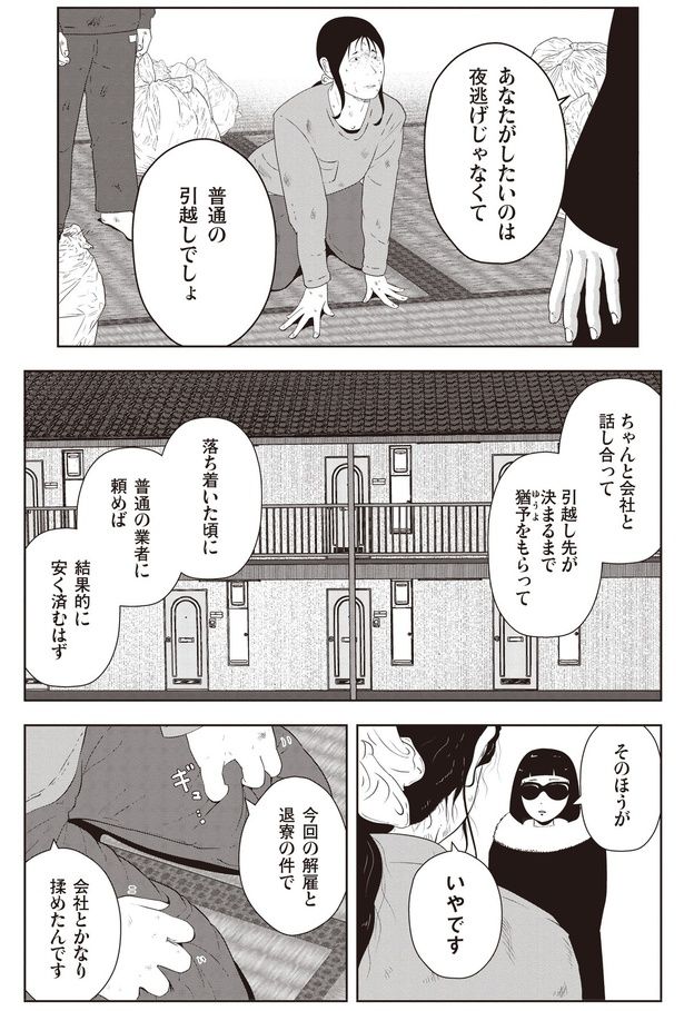 夜逃げの依頼料を払えないと言うワケありの女性。助けを求められた女社長の返答は/夜逃げ屋日記2⑨