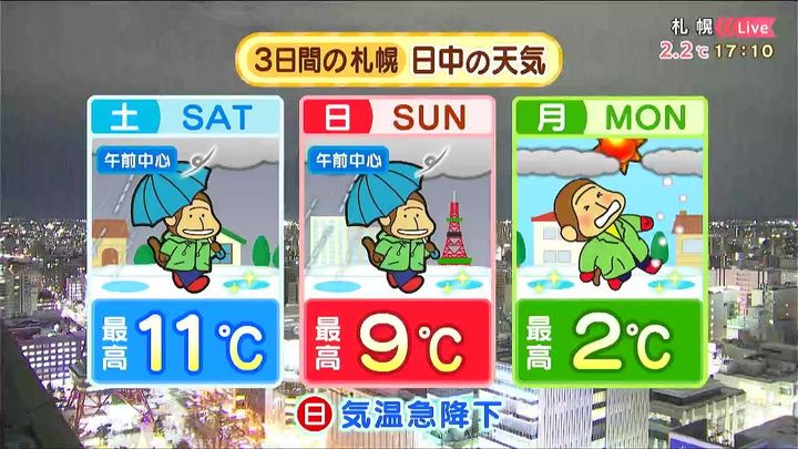 3日間の札幌です! 土日月の天気をもんすけでお伝えします!