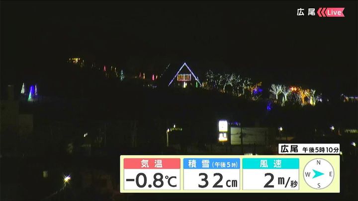 十勝の広尾町です。サンタランドのイルミネーションが見えます。今年のクリスマスはサンタさん、北海道に暖気と雨雲を連れてきそうです。