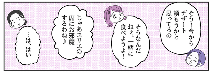 ランチを食べ終えた後、お母さんが私たちに声をかけてきました。私はジンにされたのと同じように、「せっかくだから一緒に食べよう」と招きました。そしてジンのママが私にしてきたのと同じように、両親がジンに話しかけました。