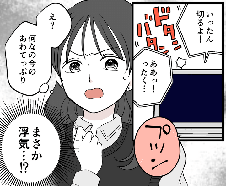 画面越しに見えるコウタのアパートの部屋をチラリと見ました。たしかにいつも通りきちんと片付いています。頑張っているんだなと思った途端、コウタが急にオンライン通話を切りました。