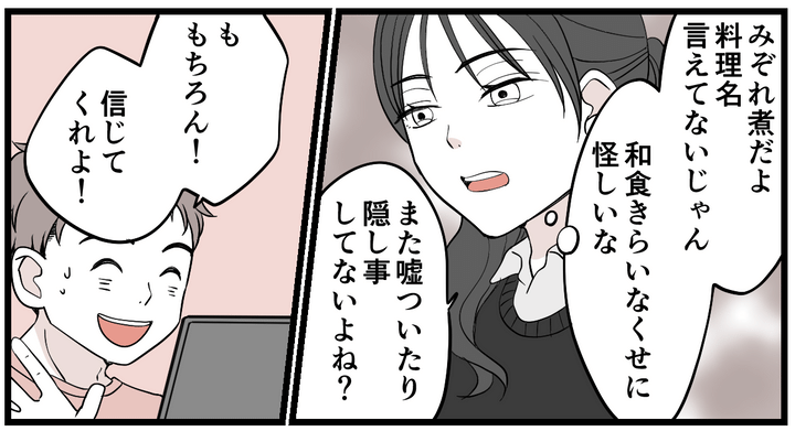 私が追及すると、コウタはオロオロしはじめました。昨日の夕飯の献立を聞いてみました。家にいた頃のコウタが作れるようなメニューではありません……。