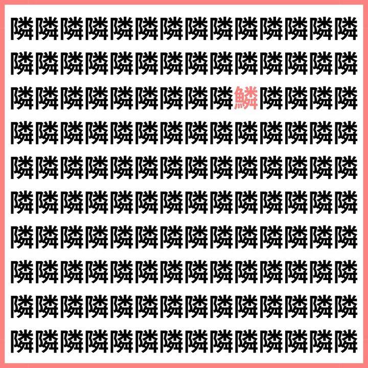 隣に鱗あったら怖い!【1文字だけ違う】漢字間違い探しで脳トレ、何秒で見つかる?