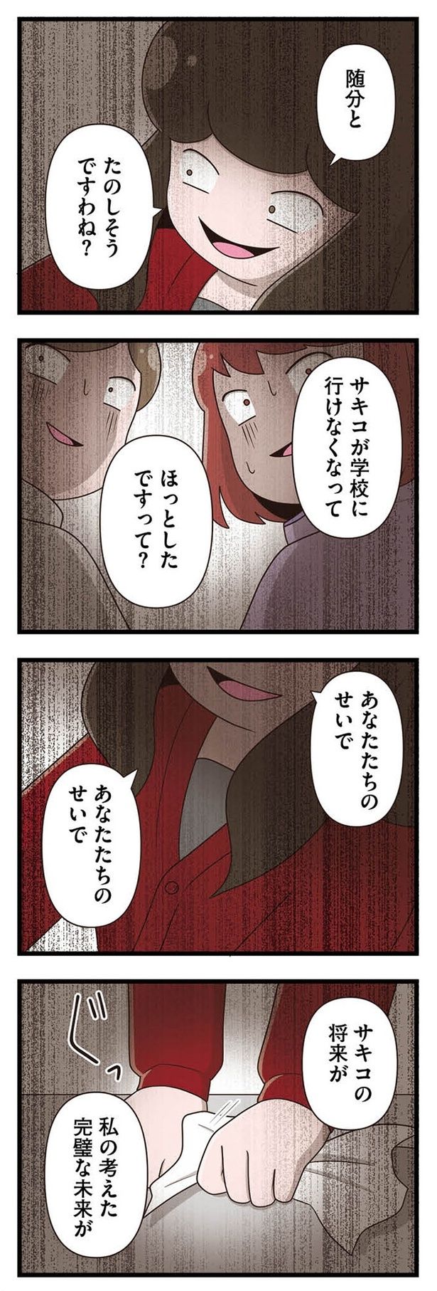 「お前たちのせいで!」いじめられている娘への対応を抗議しに学校に乗り込むと…/「お母さんの言うとおり」にしてきたのに㊶