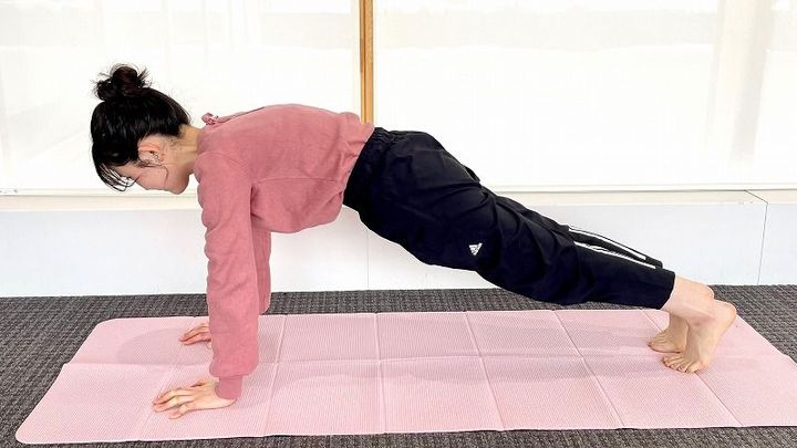 床スレスレのところで体を浮かせてキープ。脇はしめる。