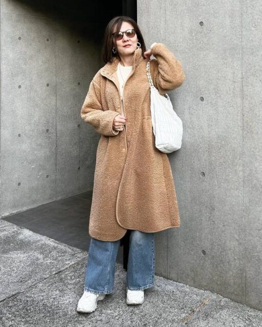 スニーカーに合う服といえば「デニムパンツ」。その際ぴったりしたスキニーではなく、ゆったりめのストレートやワイドシルエットを選ぶのがコツです。今っぽいデニムを合わることで、時代遅れ感が出にくくなりますよ。さらにロングコートを羽織るとサマになる着こなしに。