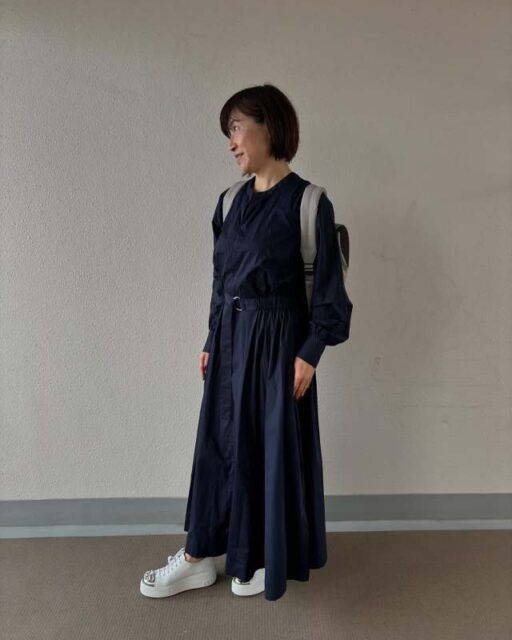 【50代の冬のスニーカーコーデ5】スニーカー×ゆったりとしたワンピース
