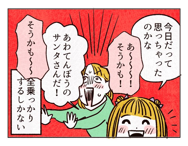 3. <失敗した……>娘の視線の先には、赤い袋【サンタのコソコソ話:ヤマダ家】#4コマ母道場