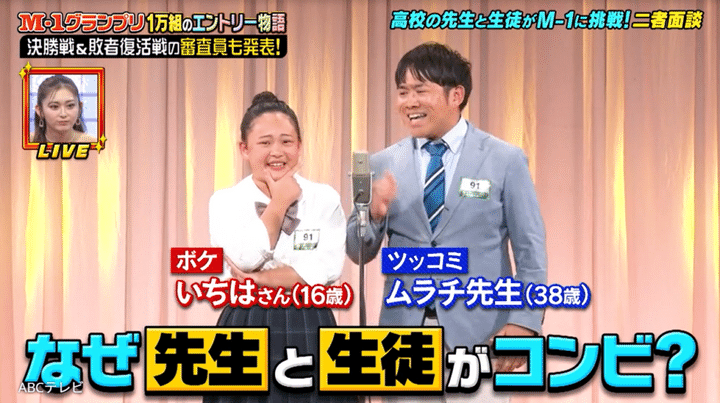 3. M-1に16歳女子高生&38歳男性教師コンビが出場! 推しはINI髙塚大夢、元相方はあの有名ピン芸人