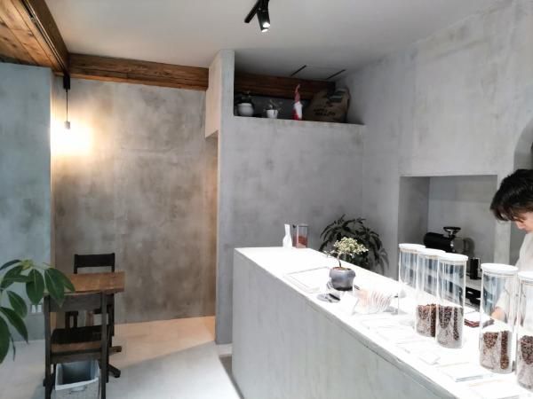 お店の外観は、ぱっと見は「お店はどこに…?」と思うほどですが、よく見るとおしゃれな看板が。そして店内はグレーで塗装されたシックな内装。店名が「うすずみ」だからグレー(薄墨色)にしたんだそうです。薄墨=陰の色。コーヒーは陰で、飲む人を支える側。お店のコンセプトは『主役のあなたが輝くコーヒーを』。「コーヒーを飲んで、ふうっと息がつけるような、またやる気を出せるような…うちのコーヒーが、そんな日常的な支えとなれたら」とオーナーはおっしゃっていました。