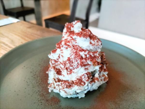 スイーツのティラミス(650円)も注文。ビスキュイではなく、エスプレッソを入れて作られたクッキーが入っていて、コーヒーのいい香りと、ザクザク食感が楽しめておいしかったです。冷凍でテイクアウトもできるそうです。この日はなかったですが、コーヒー豆の形をしたクッキーも、コーヒーの香りがよく、おすすめです♪