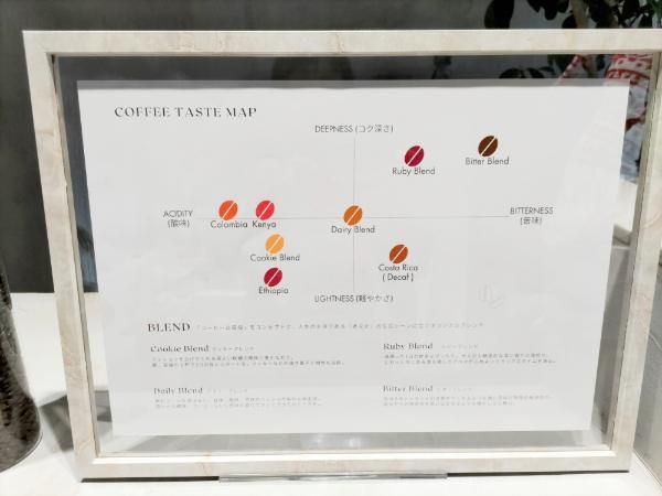 オーナーは、福岡市と北九州市の専門学校で、コーヒーの講師もされている、黒木翔太さん。さすが講師をされているとあって、知識が豊富!コーヒー豆の産地や、豆の挽き方、その違いなど、聞けば丁寧に教えてもらえます。カウンターには、コーヒーのテイストの分布が描かれたマップもあり、好みの豆を選びやすくしてくれていました。