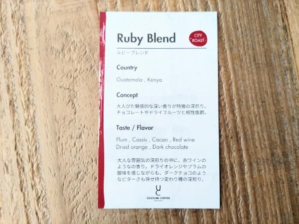「本日のおすすめ」のドリップコーヒーは、エチオピアの豆(500円)。華やかないい香りがふわっとする、酸味があるタイプでした。好きな豆を選んでドリップしてもらうこともできます。「ルビーブレンド」は深煎りで、少し苦味があって深い香りのコーヒー(600円)。疲れた時に飲みたくなるような、スイーツにも合う味わいでした。