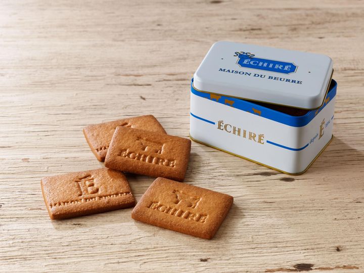 発売当初から変わらない、白地にブルーのロゴが描かれた缶の蓋を開けると、ÉCHIRÉの文字や牛の刻印のサブレが現れ、もらった人の心を和ませてくれるはず。