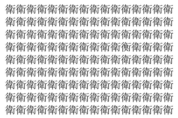 【脳トレ】「衛」の中に紛れて1つ違う文字がある!?あなたは何秒で探し出せるかな??【違う文字を探せ!】