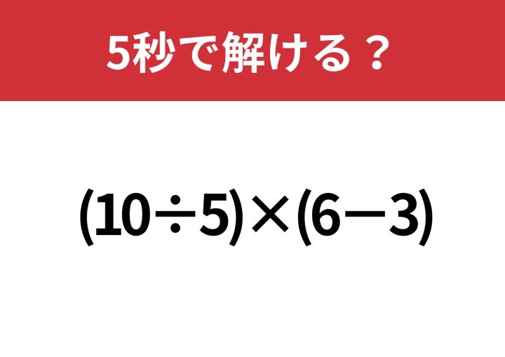 大人なら全員正解できるはず!「(10÷5)×(6−3)」5秒で解ける?