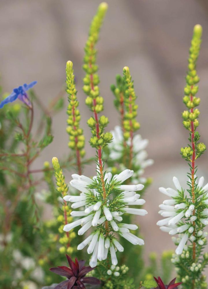 多彩な品種があるエリカの中でも存在感を出せる ‘ホワイトデライト’ 。霜には当てないようにします。